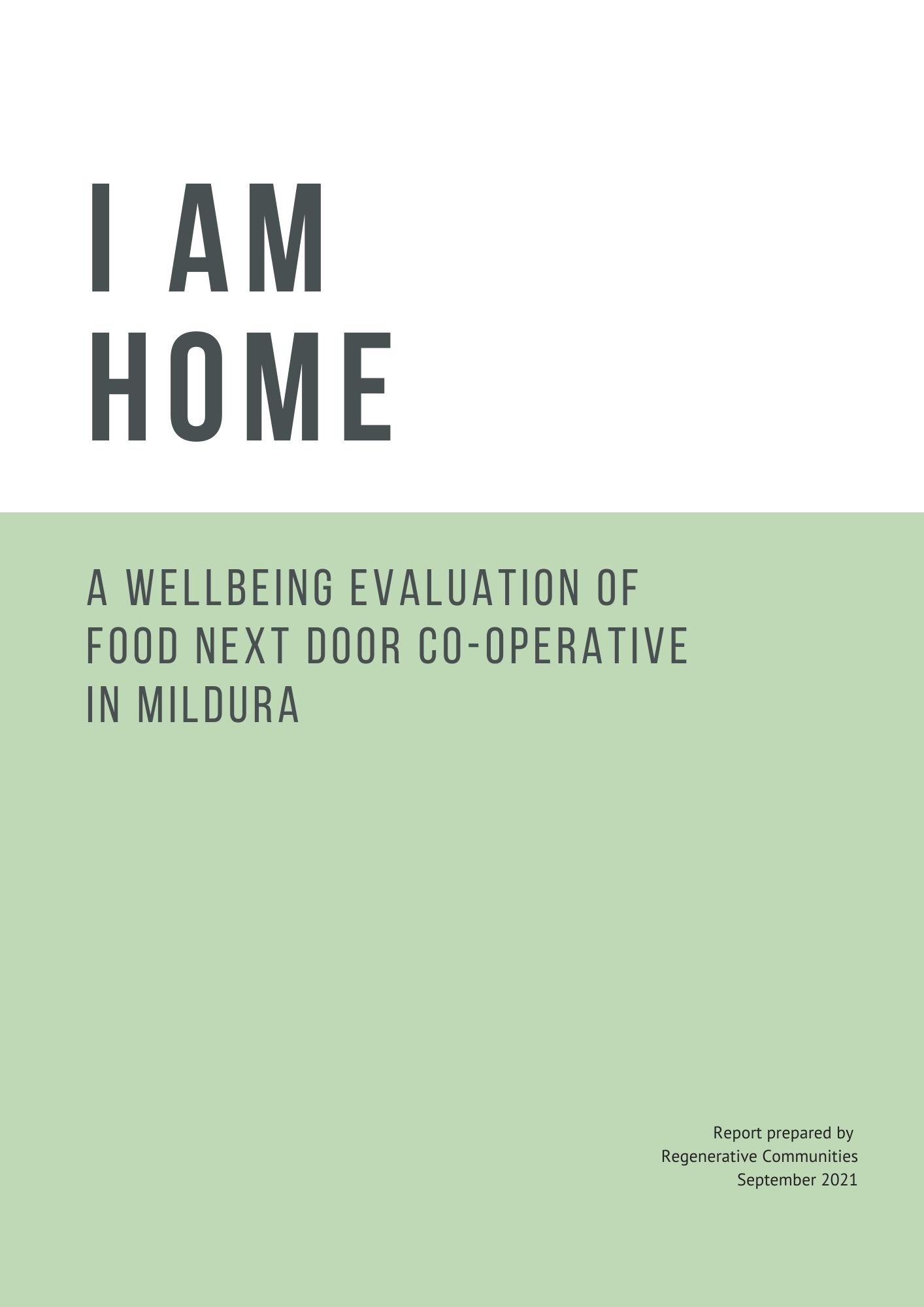 This report has been developed for Food Next Door, to evaluate wellbeing outcomes associated with their project Building community and sustainable local economies through food: Food Next Door Community Demonstration Farm, funded via Regional Development Victoria.